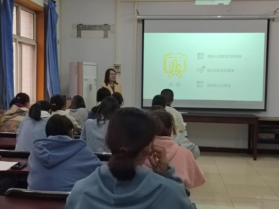 高星结合员工实际,以“如何适应老员工活”为题,与同学们就学习方式、创新创业比赛等方面进行了深入沟通;孙茜从自己的求学经历谈起,和同学们分享了如何高效学习和科研;张亚宁以“老员工创新创业赛事指导”为题,对创业计划书和科研项目申报书的各部分内容的撰写进行了细致耐心地讲解;张卫以“老员工社会调查方法”为题,轻松幽默地讲解了学好社会调查的重要性,通俗易懂地讲解了选题、调查方法与调研基本流程等内容,建议大家掌握好这门做好学问、认识社会的基本功。